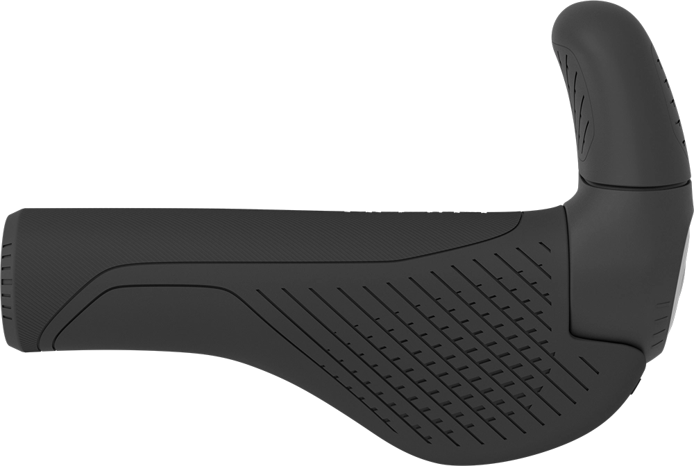 広いウイングシェイプ、スポーティーなフォルム、優れた快適性を発揮するテクスチャーを採用したオールマイティーグリップ。2フィンガータイプの角度調整可能なバーエンド付きモデル。ツーリング、フィットネス、eバイク、バイクパッキング ライドなど、様々な用途に対応します。カーボンハンドルバーにも使用可能。